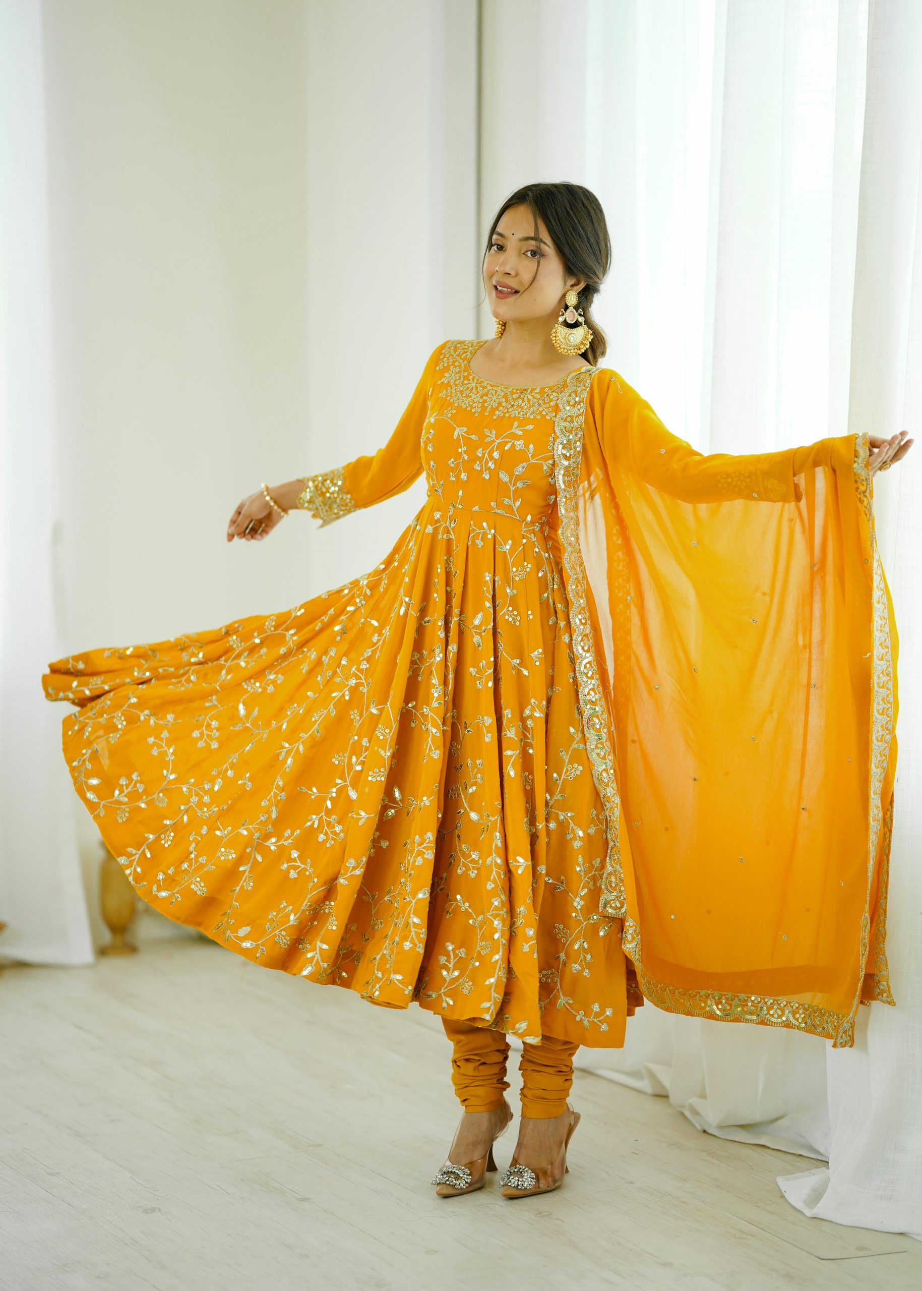 Fabric: Heavy Faux Georgette With Embroidery Sequence Work With Fully Flair